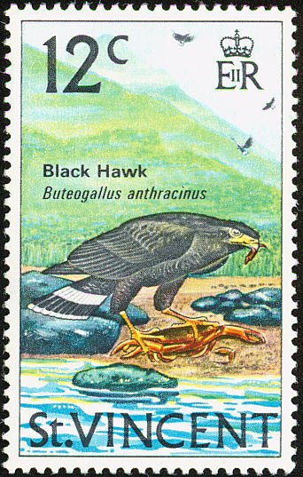 Visibility: public Image owner: none postage 1/12/1970 12c multi dt=birds (1970 St. Vincent) d=Buteogallus anthracinus wmk=St Edwards crown & CA perf=14 Crops No visible images cropped from this one. Measurements Resolution is unknown. Source Source name: Colnect File URL: http://i.colnect.net/b/1755/548/Common-Black-Hawk Buteogallus-anthracinus.jpg Uploaded December 27, 2013, 5:57 am by Stan Shebs |